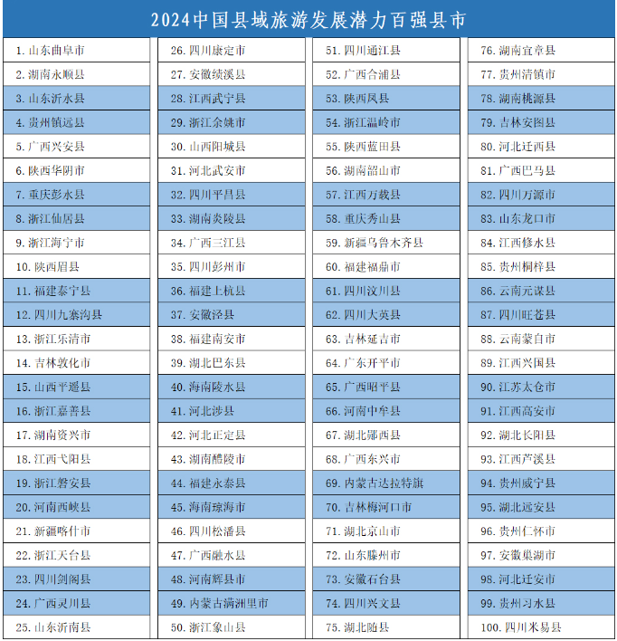 《全国县城旅游发展研究报告2024》,中国县城旅游发展前景百强。