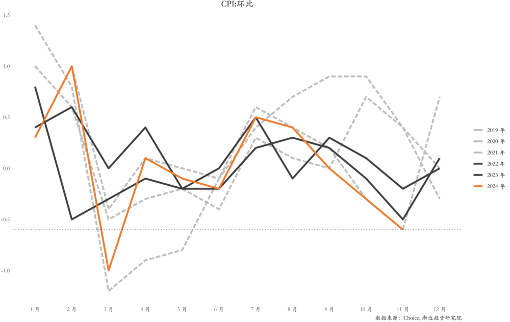 11月份CPI同比和环比下降。受天气影响较大的新鲜蔬菜、新鲜水果价格明显下降,暖冬对CPI的影响主导着CPI的变化。然而,随着天气变冷,新鲜蔬菜、新鲜水果等新鲜食品对CPI的负面贡献将会结束。消费品和服务价格延续了上个月的趋势,其中消费品价格明显弱于往年同期,服务价格正常。