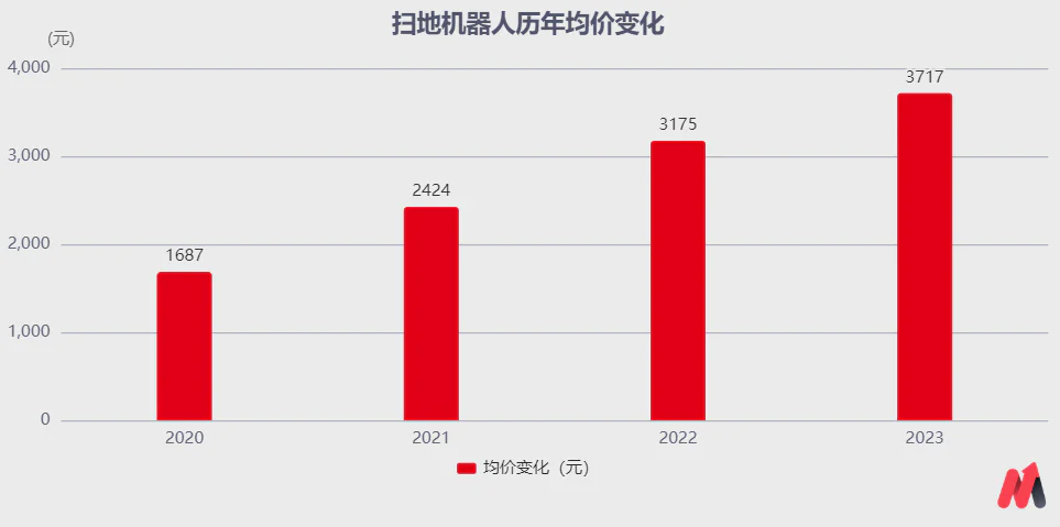 扫地机器人越卖越高。随着自带基站的扫地机器人的出现,其价格进一步移位。据统计,2020年国内扫地机器人平均价格为1687元,但到2022年,平均价格高达3175元,短短两年几乎翻了一番。