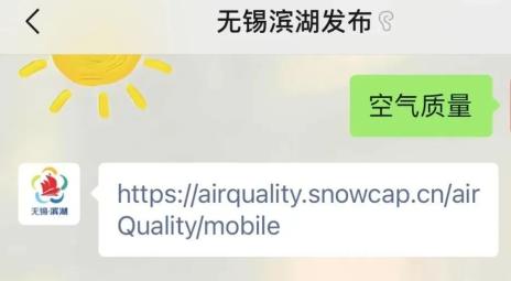 关注“无锡滨湖发布”微信公众号,发送“空气质量”,查询“空气质量健康指数”。