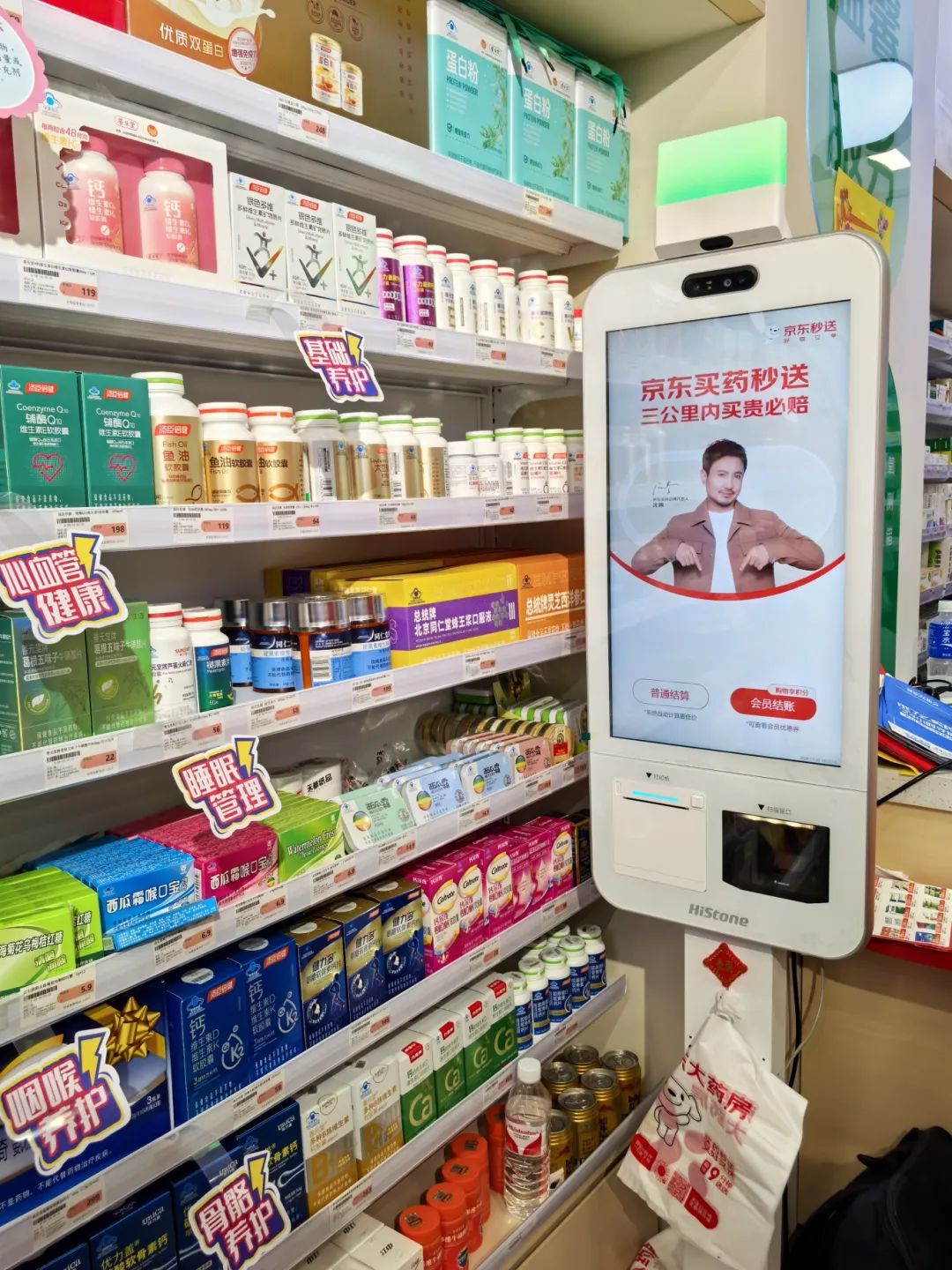 海石大屏幕自助终端HS330最近正式进入京东健康旗下的新店——京东大药店武圣路店。