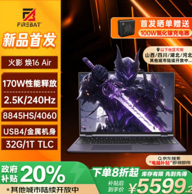 根据京东更新的电子商务页面,火影焕发 16Air 有两种型号,但目前只有两种型号, 32GB 本版申请国补型号,原价, 6999 元,国补售价为 5599 元。从 8845HS 满血 4060 2.5K240Hz 从高刷屏配置来看,这个价格与机械革命翼龙配备的机械革命相似 Pro(8845H 版本)便宜 400 人民币,在价格上有相对优势。