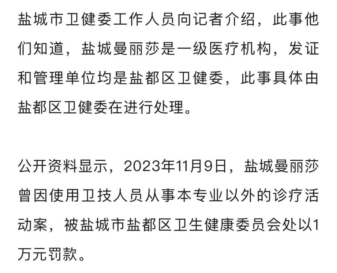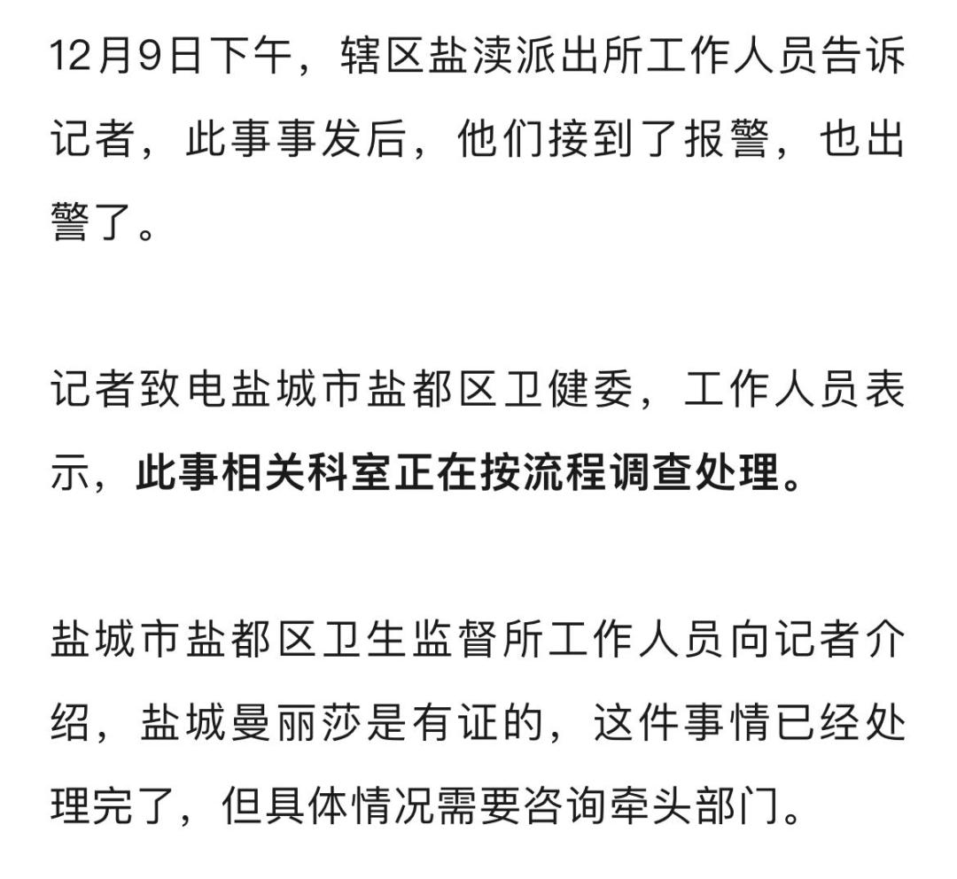 记者致电盐城曼丽莎多部公开电话,均无法接通。