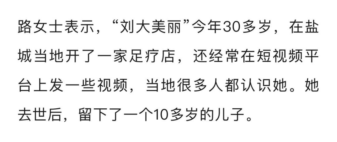 一位认识“刘大美”的知情人路女士(化姓)告诉记者,事发后,“刘大美”的家人和家人从家乡赶往江苏盐城,这是当地警方的调解。目前,死者的尸体还没有火化,因为相关事情还没有完成。