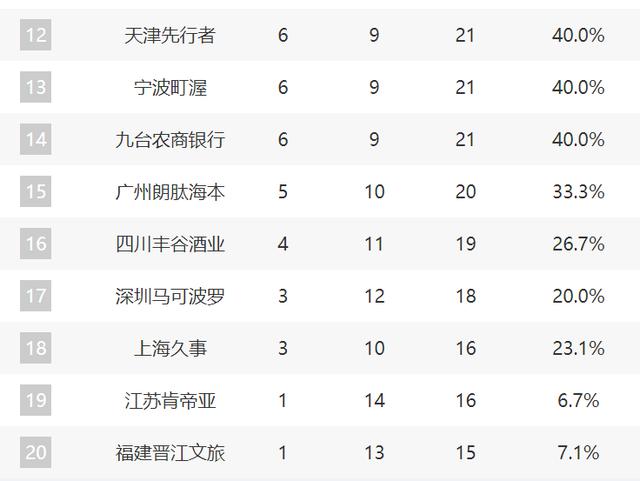 12-14 已开始断档,天津、宁波、吉林均为断档, 6 个胜场。但宁波是个惊喜,这一轮他们击败了深圳,咬紧了大部队。此外,目前广州年轻球员的表现还不错,而且上海正走上正轨。就第 12 竞争,将成为后续话题。因为天津、宁波、吉林、广州、上海都能冲击第一。 12。特别是在上海,他们的阵容实力是有优势的。因此,同曦、青岛、广东、北控等球队,必将面临巨大挑战。