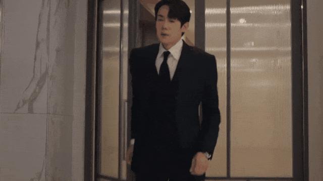冷酷的总裁穿着他宽松不合身的西装,组合不明白为什么一定要穿,但我觉得是为了营造一件有很强气场效果的猪肝风衣,幽默出现了。