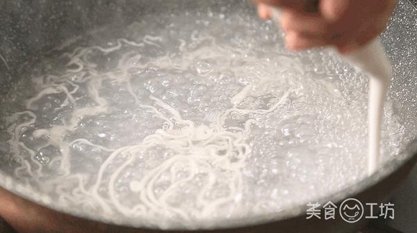 5. 锅内加水,水微沸后开始挤入面浆。