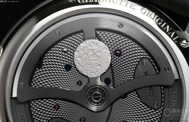 熟悉手表的玩家可以看到这款新款格拉苏蒂的原创偏心 91 在机芯倒置大日历月相之后,或许会想到朗格 1 大型月相。他们都采用了在偏心盘中布局大型月相的方法。格拉苏蒂原有的机芯倒置“向天摆”的外观更加耀眼;朗格 1 外表内敛一些。