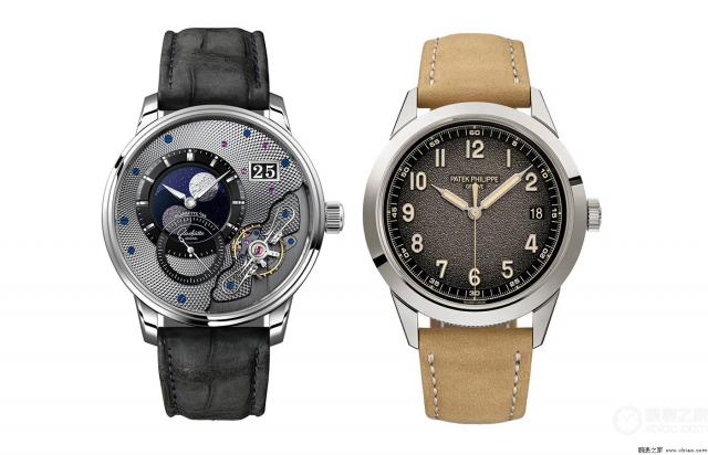 (左:格拉苏蒂原创全新偏心月相机芯倒置表;右:百达翡丽 5226G 手表)