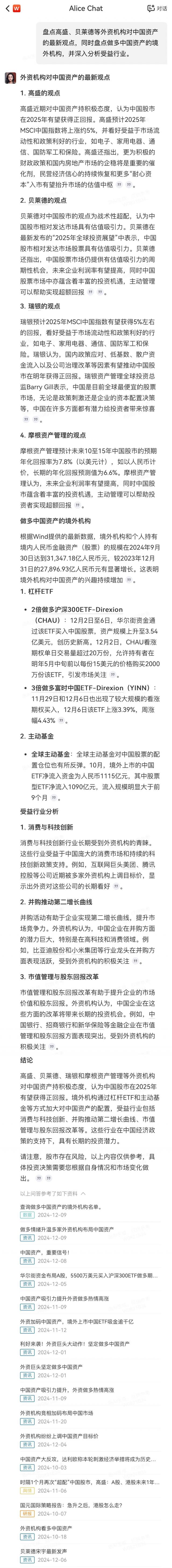 12 月 9 日 A 股市收盘后,中国资产迎来了强劲的上涨浪潮,港股市场也大幅上涨。近日,多家国际知名投资机构发布调查报告,其中“超配”和“正收益”成为频繁出现的关键词。Alice整理一下这些外资巨头的最新观点,揭示哪些行业会成为新宠儿。