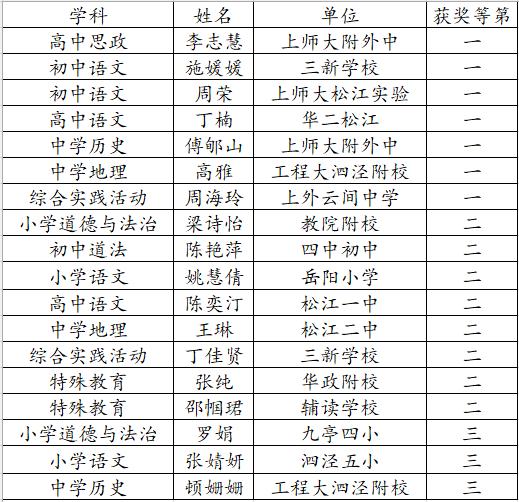 一等奖获得者数量位居全市第二!松江青年教师,太棒了!
