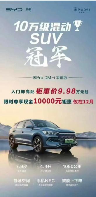 本月比亚迪第二波降价来了,宋 Pro DM-价格被打到9.98万。
