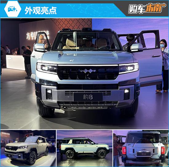 外表方面,豹子 8 采用“未来星舰美学”的设计语言,极具气势。与此同时,目前流行的贯穿式车前配置 LED 两侧的日间行车灯 C 字形与格栅融为一体,整体感十足。前围造型比较厚道,用银色饰板装饰,既营造出强烈的精致感。