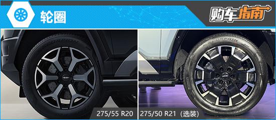 轮毂方面,2025 款方程豹豹 8 提供 20 英尺和 21 两种轮毂供消费者选择。所有型号都配备了 20 英尺轮毂,轮胎规格为 275/55 R20;21 英尺轮毂则需要选择,费用为 10000 轮胎规格为元 275/50 R21。