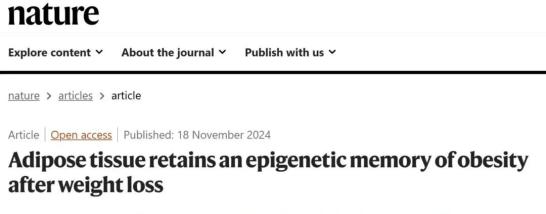 ①Hinte, L.C., Castellano-Castillo, D., Ghosh, A. et al. Adipose tissue retains an epigenetic memory of obesity after weight loss. Nature (2024). https://doi.org/10.1038/s41586-024-08165-7