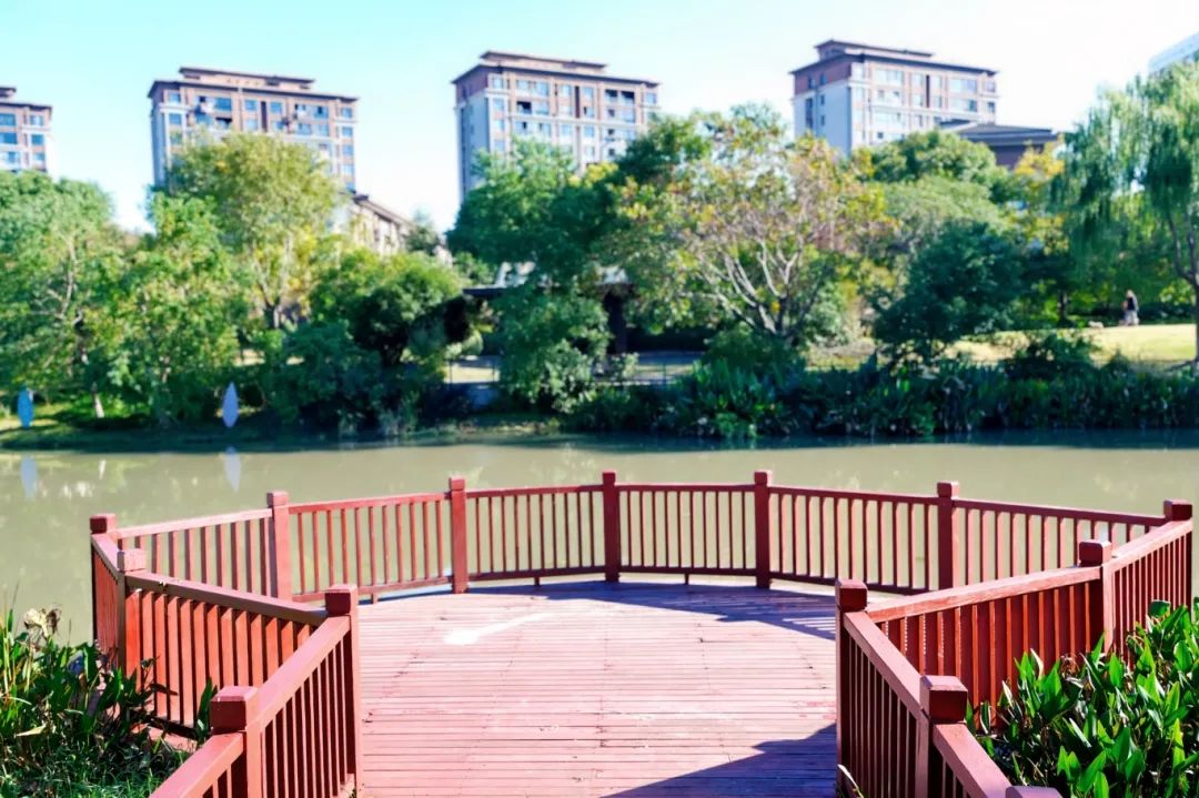 公园里,大草坪视野开阔,樟树、银杏、桂花、樱花等重要树木种类错落有致。它们与毛鹃花、金森女贞、红叶石楠、红花继木等灌木相得益彰,一起描绘出一幅四季变化的生态画轴。