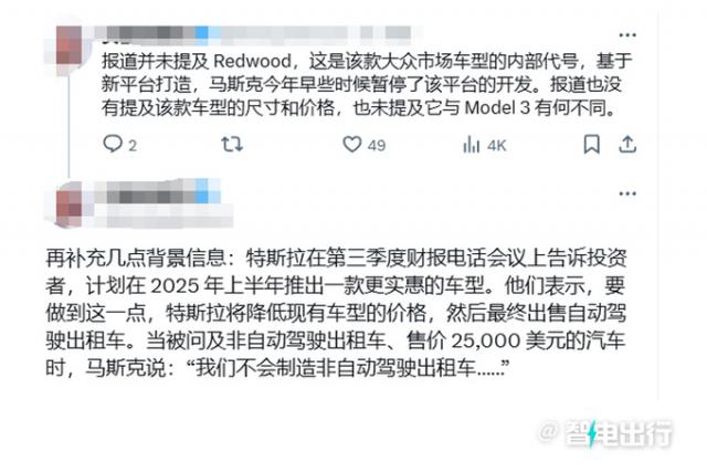 根据特斯拉的另一份报告,其中没有提及。 Redwood(最初的消息是 Model Q 车型号),而马斯克今年早些时候也暂停了平台的开发,报告中也没有提到尺寸和成本,也没有提到它和它。 Model 3 有什么不同;这也预示着新车将建立在当前车型平台上。