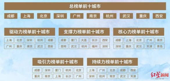12月7日,2024年中国城市生活体育指数名单在成都发布。今年前十大城市分别是成都、上海、北京、广州、南京、杭州、武汉、重庆、西安,连续两年位居成都第一。(成都商报)