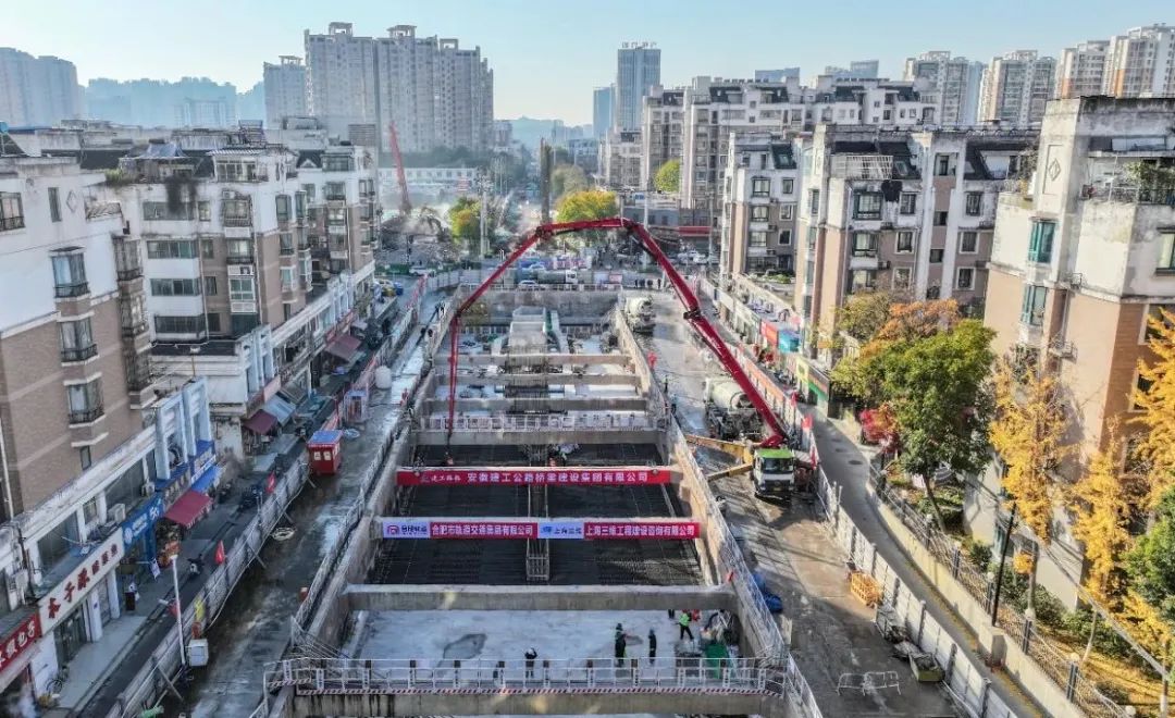 自主体结构施工以来,合肥路轨组织各参与单位选择了多项有针对性的控制措施和创新技术,面临管道搬迁困难、交通导行压力大、施工现场空间狭小、基坑岩层强度高等诸多困难,最终成功实现主体结构封顶。