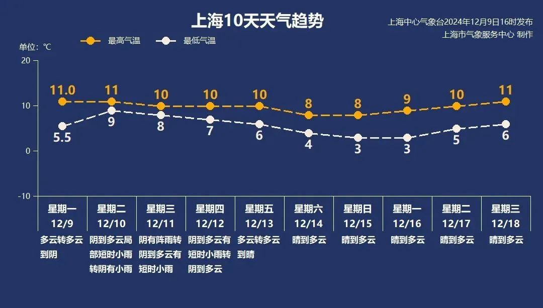 上海地区立冬标准:立冬后5天日平均气温低于10℃,第一天是立冬。12月8日,当地徐家汇站日平均气温为7.5℃,昨天也低于10℃。根据目前最新的预报,雨水的到来带来了“戏剧性”的变化。在阴雨的压制下,近三天气温不高,所以上海可能已经完成了立冬过程。能否立冬取决于今天全天气温的变化!我们拭目以待。