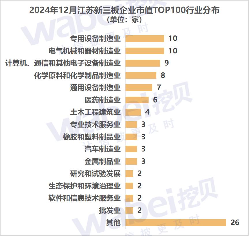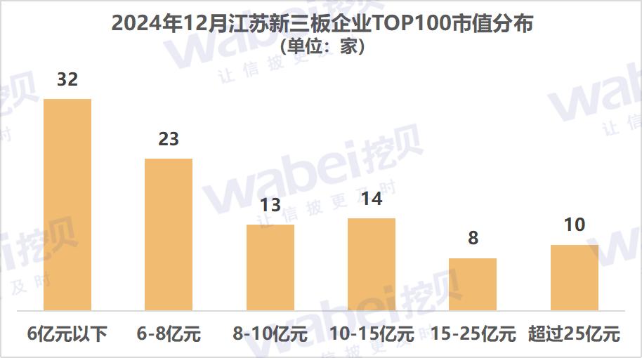 挖贝研究院梳理出2024年12月江苏新三板企业市值TOP100(以下简称:“榜单”或“TOP100”),10家企业市值超过25亿元,23家企业冲击北交所。