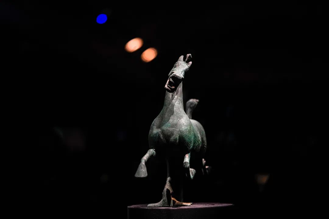 很快,一件青铜文物出现在每个人面前。这是一匹马的形状。虽然出土时有些不完整,但仍然可以看到其精湛的工艺: 奔跑的马儿身材雄壮,昂首甩尾,头微微左倾,三条腿腾空,只有右后脚落在一只展翼疾飞的小鸟背上。