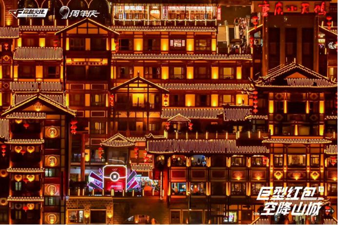 线下是结合重庆特色举办的周年庆祝活动,不仅将长江索道、火锅等典型重庆元素搬到现场,还将其打造成玩家互动区。场馆外,游戏的世界观设定和玩法融入重庆地标,让玩家可以看到洪崖洞附近的玩家带着CF手机游戏Logo红包从天而降,体验游戏中“拆包”的快乐。