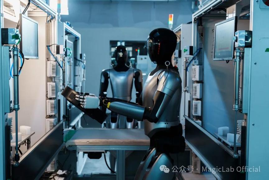 12月2日,Magic Lab发布视频公布产品进展,视频显示,人形机器人Magic Bot已进驻工厂产线,进行了物料搬运、零件抓取、扫码操作等多项作业训练。部分工作场景中,多台人形机器人已经可以协同工作。