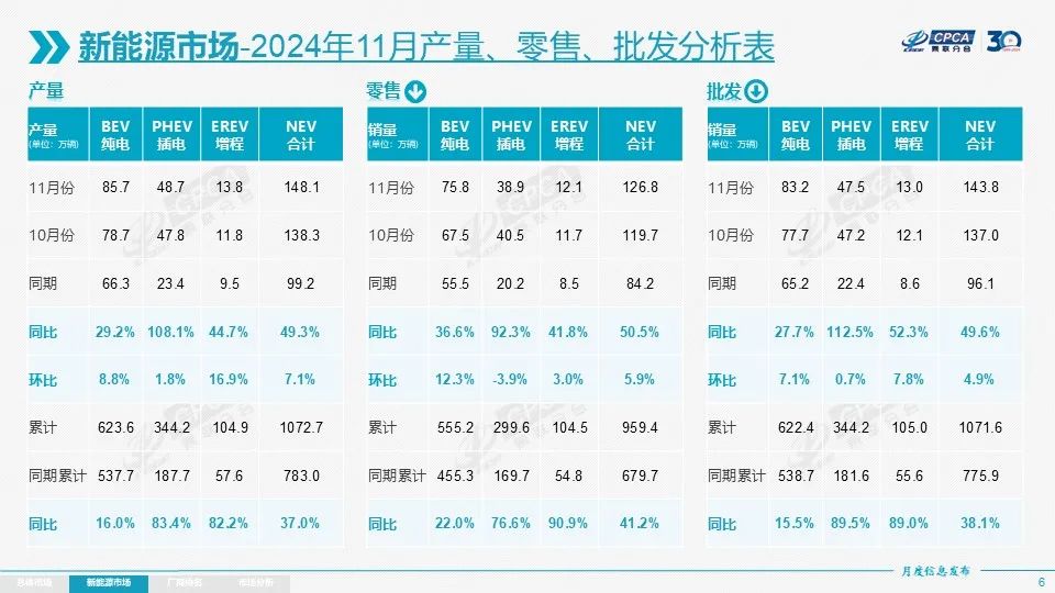 作为一个论据,我们将继续关注刚刚公布的11月份乘联会成绩单,批发销售中纯电比例为58%。、插混比例为33%、增长率为9%。