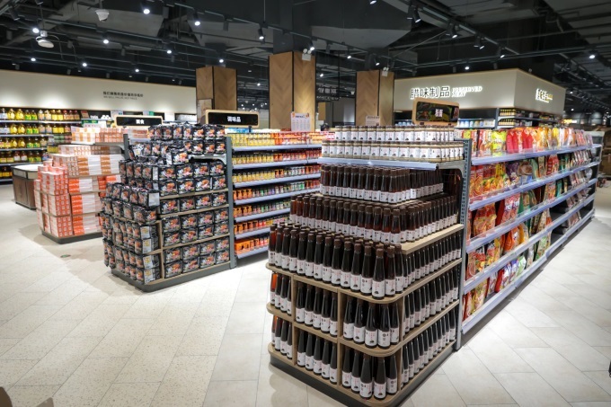 动线布局方面,取消强制动线,拓宽门店通道,保证门店动线畅通,为客户提供方便舒适的购物环境。新增烟酒柜、便民服务区、扩大烘焙区、现场加工、熟食区,取消电商运营。