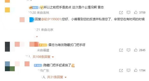 小米SUV隐藏门把手被吐槽,雷军评论区沦陷