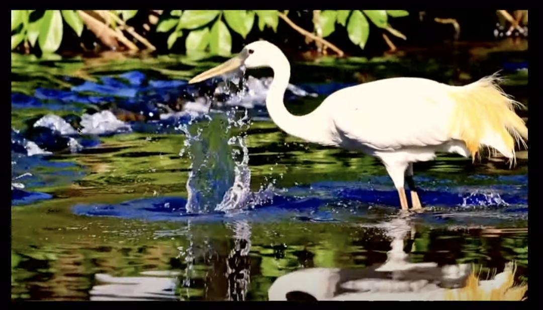 最终,他得到了一个完整的视频镜头,「美丽的白鹤站在小溪里,它有一条黄色的尾巴。接着鹤把头伸进水里,抓起一条鱼。」