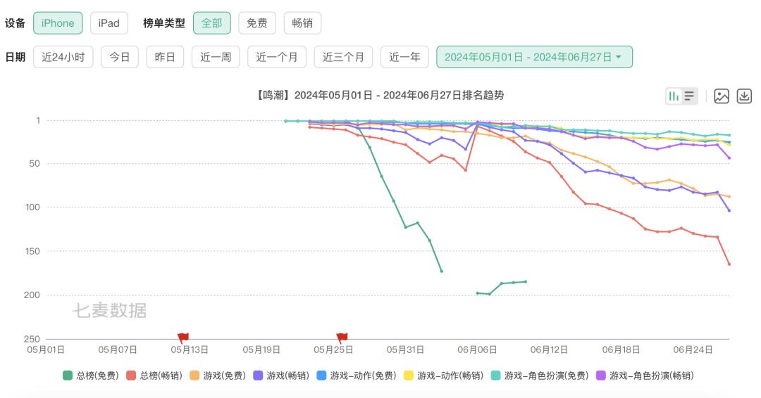 所以在那个时候,这个游戏 App Store 排名趋势虽然不敢说是高空跳水,但也可以说是一路向下。