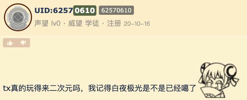 面临这样的事情,玩家基本上有两种态度,一种是坏坏,腾子真的懂二次元吗,总之哥们玩不懂马服,先润了。