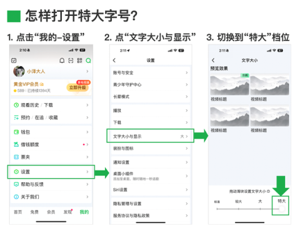 为了满足中老年客户日益多样化的娱乐需求,提供更加贴心便捷的视觉体验,爱奇艺APP近日推出“超大字号”功能,一键即可全面实现页面和主要功能的老化,为中老年客户提供更加清晰、便捷、优质的娱乐服务。