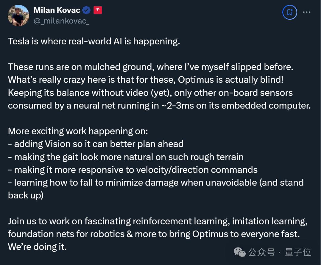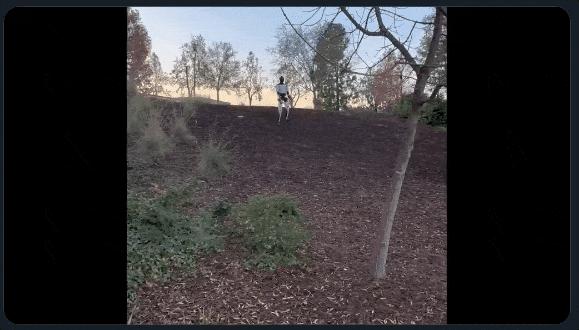 马斯克机器人蒙着眼睛在室外闲逛,45°陡坡跑下,网友:只有一点“脚滑”