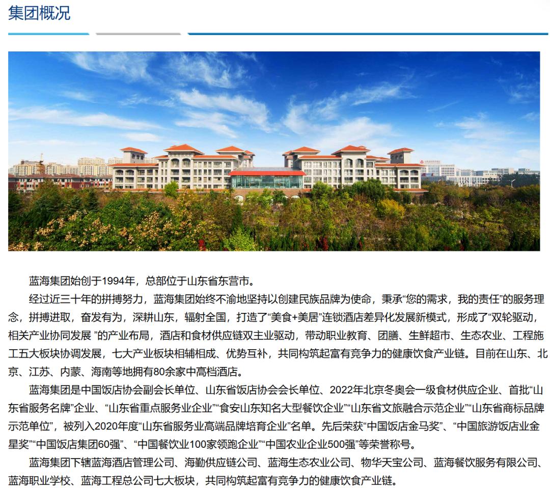 在酒店业态中,蓝海股权在盲目追求规模的同时,横向做多元化业务。。公开信息显示,蓝海股份有限公司有7个板块:蓝海酒店管理公司、海勤供应链公司、蓝海生态农业公司、物华天宝公司、蓝海餐饮经营有限公司、蓝海职业学校、蓝海工程总公司。