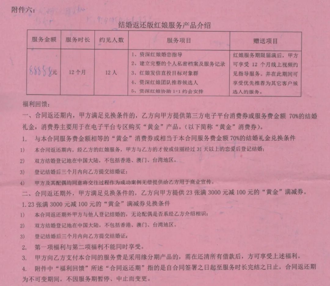 第二部分介绍了“完婚退还版红娘服务产品”