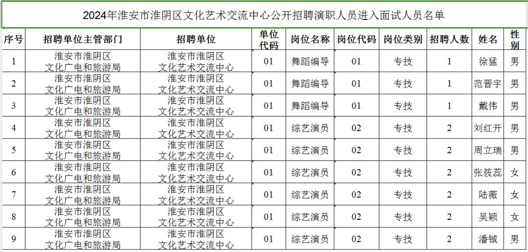 公布进入面试人员名单