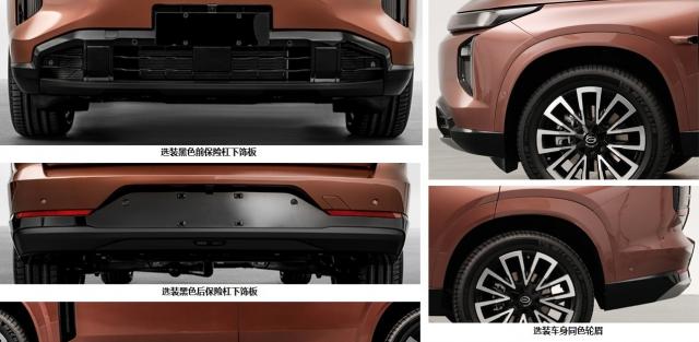 传祺 S7 侧面采用隐藏式门把手,并配有隐藏式门把手。 20 英尺两色多辐轮圈,同时车侧采用隐藏式 B/C/D 柱子设计。对车尾部分,传祺 S7 选择环形尾灯组,两侧尾灯内展现多条幅造型,后围为隐藏式排气布局。