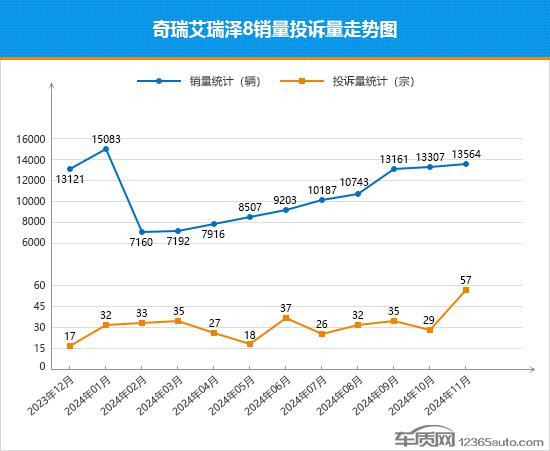 11 月亮,奇瑞艾瑞泽 8 月度销售创下了年度最高纪录,持续 5 月销量突破万,市场走势强劲。今年 1-11 每月累计销售额已经超过。 2023 年度总销量,从早期表现平平到现在,根本原因在于车型更新速度的加快,与时俱进的设备升级使其始终充满竞争力。但是,在销售高光的背后,投诉数量的持续高企也不容忽视。本月艾瑞泽 8 近一年来,投诉数量达到最高点,环比上升。 96.6%。根据车质网的数据,车主针对艾瑞泽 8 抱怨主要集中在“影音系统故障”上,有些车主反映其车机系统经常出现卡屏、卡死等情况,影响日常使用。虽然厂家对车主的需求非常重视,但处理率并不高,在同期自主品牌车型中处于中游水平。截至发稿时,投诉数量仍在持续增加。从其 11 每月投诉销售比值的变化可以看出, 10 与月份相比,月份有了很大的提升,在所有的榜单车型中排名最后,投诉销售比例并不乐观。现在是艾瑞泽 8 从市场走势来看,短期内大概率会继续上涨,但如果不尽快消除口碑恶化的隐患,必然会对其未来发展产生很大的不利影响。