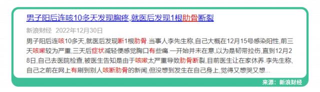 当你咳到胸痛当时,这表明咳嗽的程度比较剧烈(虽然像开头提到的肋骨被咳断的情况还是比较少见的),或者做了胸部动作,大笑,打喷嚏等动作都会引起胸痛,还建议及时就医检查!