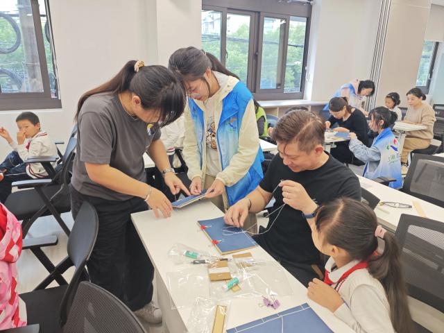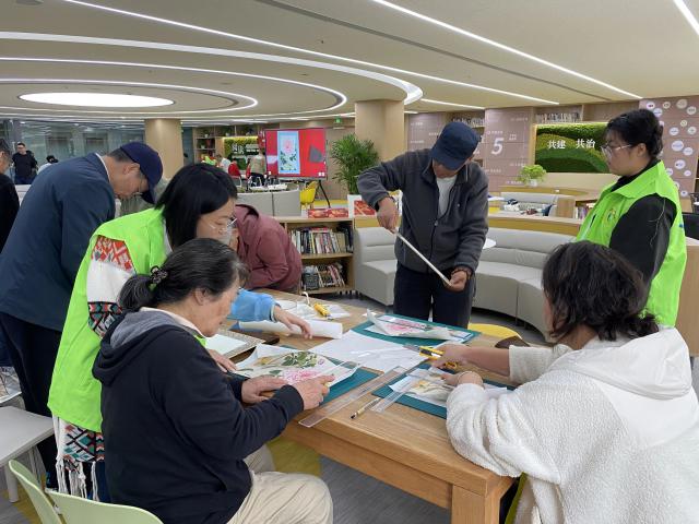 在古书装帧的展台前,孩子们奇怪地听着志愿者老师的解释,不时提出自己的问题;在书画装裱的展台前,家长和孩子一起工作,体验艺术创作的快乐;在拓印活动中,老年居民和孩子们一起工作,感受古代印刷的独特魅力...