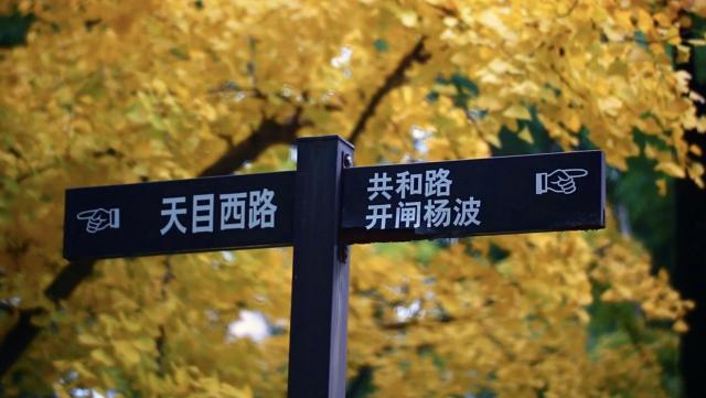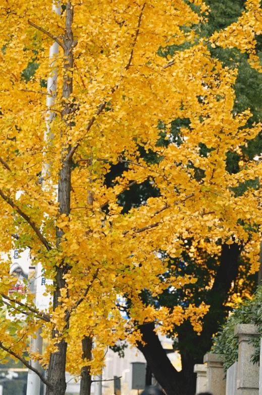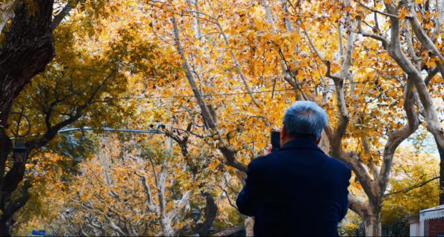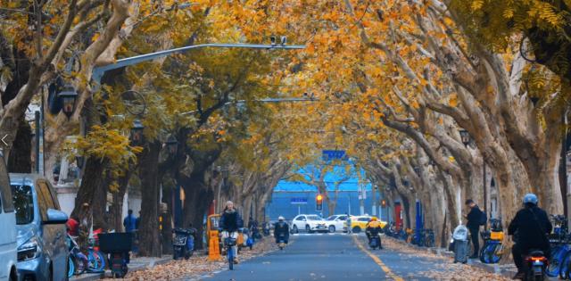常德路(延安中路-北京西路)的 130 余株银杏笔直地站在道路两旁,用纯金色的画笔勾勒出城市的轮廓。微风吹来,金叶沙沙作响,像蝴蝶一样落下。