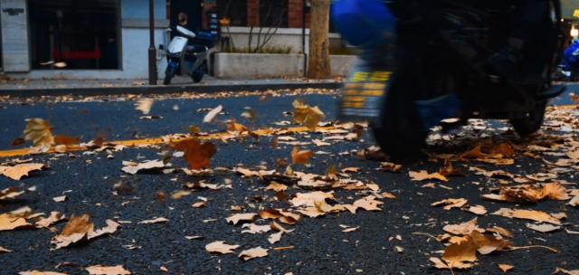 现在,静安区常熟路-富民路(常熟路)和康定东路(石门二路-泰兴路)已经开启了“落叶不扫”的方式,道路两旁以悬铃木为主的绿树飘然枯叶,为街道铺上了一层厚厚的金色地毯。