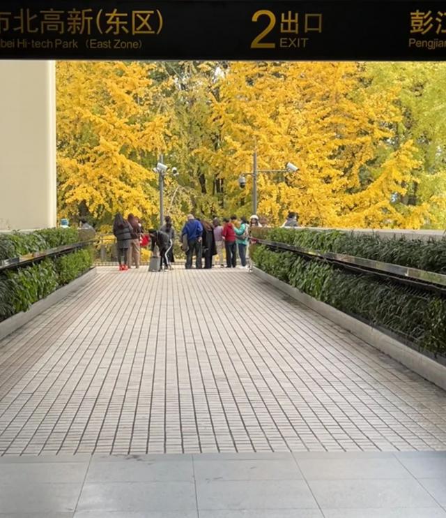 1 汶水路站外静安中环公园银杏林已经“换上”金色的礼服,秋冬浪漫的气氛“拉满”。站在车站 2 号口,眼睛就能看到,闪亮的银杏给视野增添了一层温暖的滤镜,走出通道,就像走进了一个金色的童话世界。