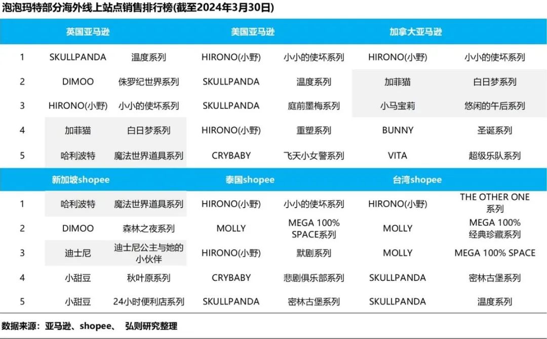 尤其是从结果来看,除了一些有自己故事线的外部IP之外,泡泡玛特海外市场的热销和中国市场的差距并不大。——Molly、Skull Panda、Dimoo和Hirono(小野)。