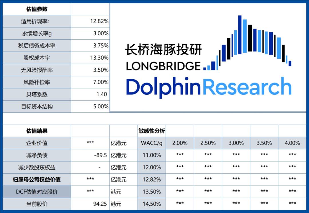 海豚君在估值核算方面采用了两种方法,PE 通过SOTP和DCF两种方法来检验结算。根据DCF估值,WACC的可持续增长率为3%,WACC为13%。在这两种情况下,估值基本上是相互验证的,考虑到IP产品周期的不确定性,DCF折现现在对WACC提出了相对较高的要求。
