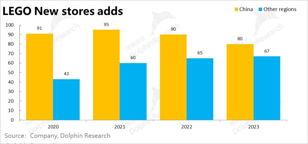 从业务发展的角度来看,乐高:a.欧洲和美国是基本面;b. 亚洲,尤其是中国,处于开发期。虽然近两年中国乐高的生意也比较低迷,但公司还是坚定地看好未来,所以还在继续开店。