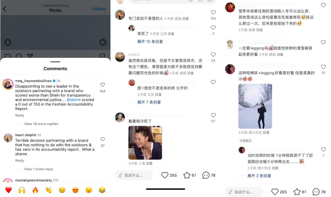 适合拍照而不是滑雪,短外套配leggings不耐寒,背部漏风,外网对SKIMS不环保的质疑,北方和SKIMS的开局充满争议。